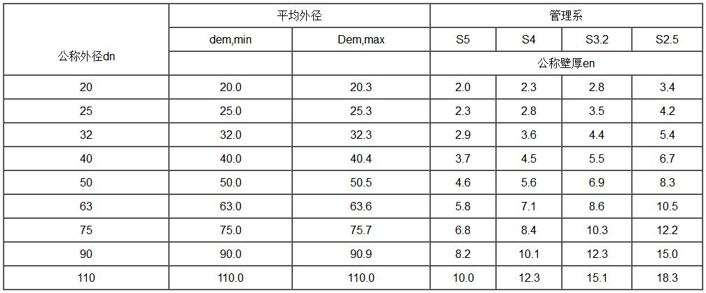 內(nèi)徑系列管材的尺寸dim,min                                            執(zhí)行標(biāo)準(zhǔn)GB/T18742.2-2017單位:mm